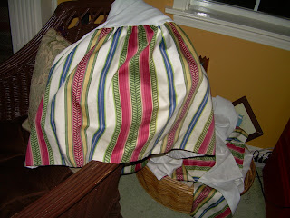 Between learning a new job, and other interesting life changes; I have been nesting. I moved the cornice to over the couch and am just using one of them. I found this bed skirt that I am considering making valences out of this fabric for the other windows. What do you think? Is it too much? Use a solid or something else? I think it works pretty well, but I'm not sure. The valence would hang inside the white framing.